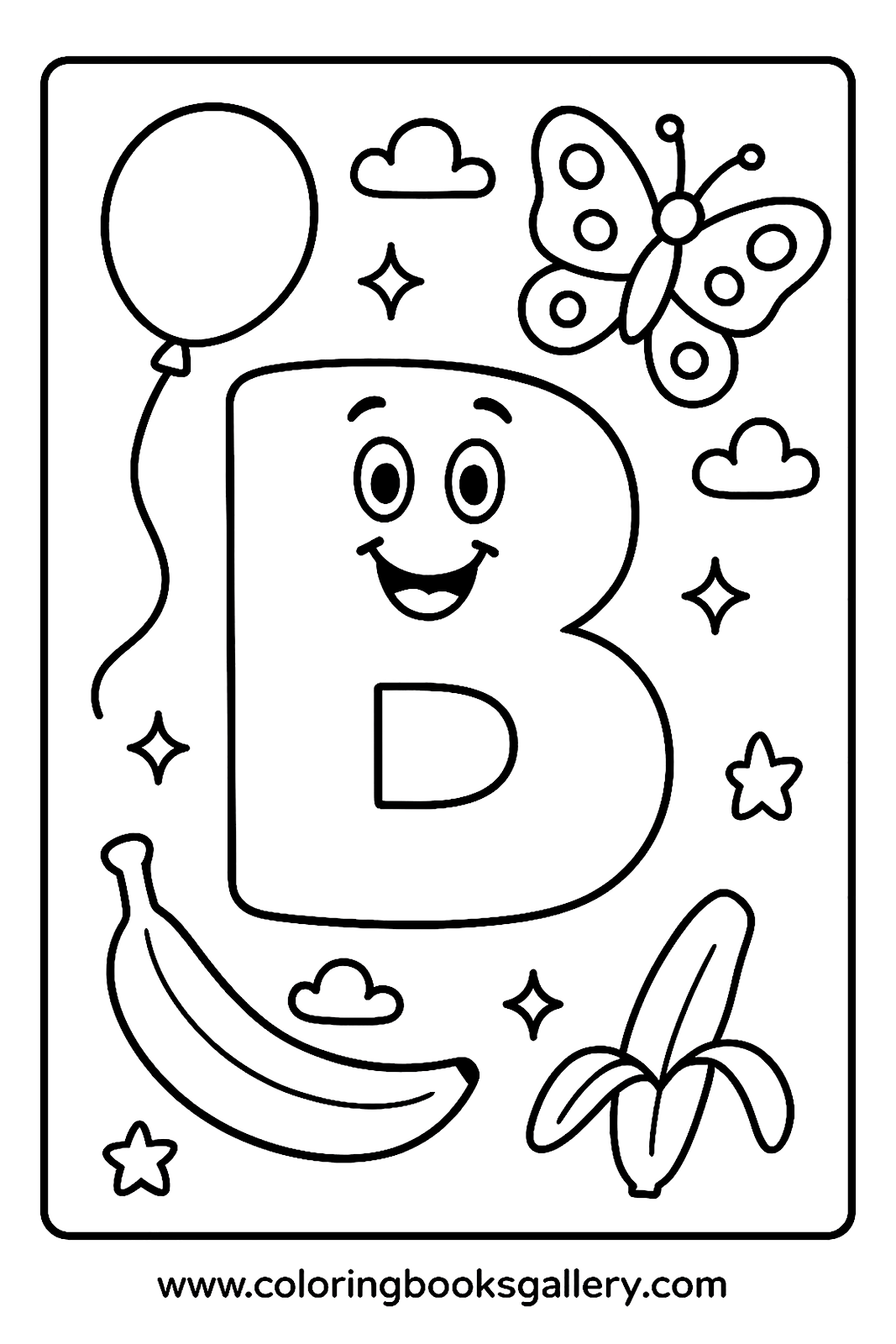 Cute letter b coloring page for kids to learn the alphabet