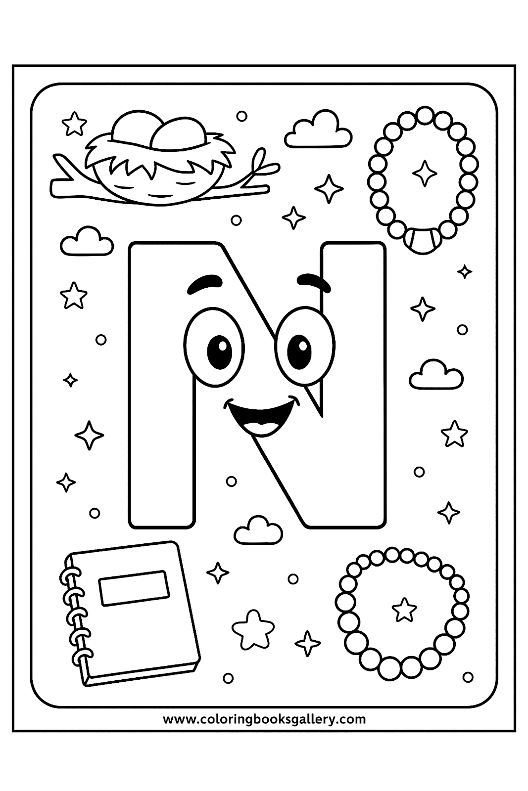 Introduce your little ones to the alphabet with this adorable letter N coloring page! Fun and easy to color, this printable makes learning the ABCs exciting and helps kids recognize the letter N in a creative way.