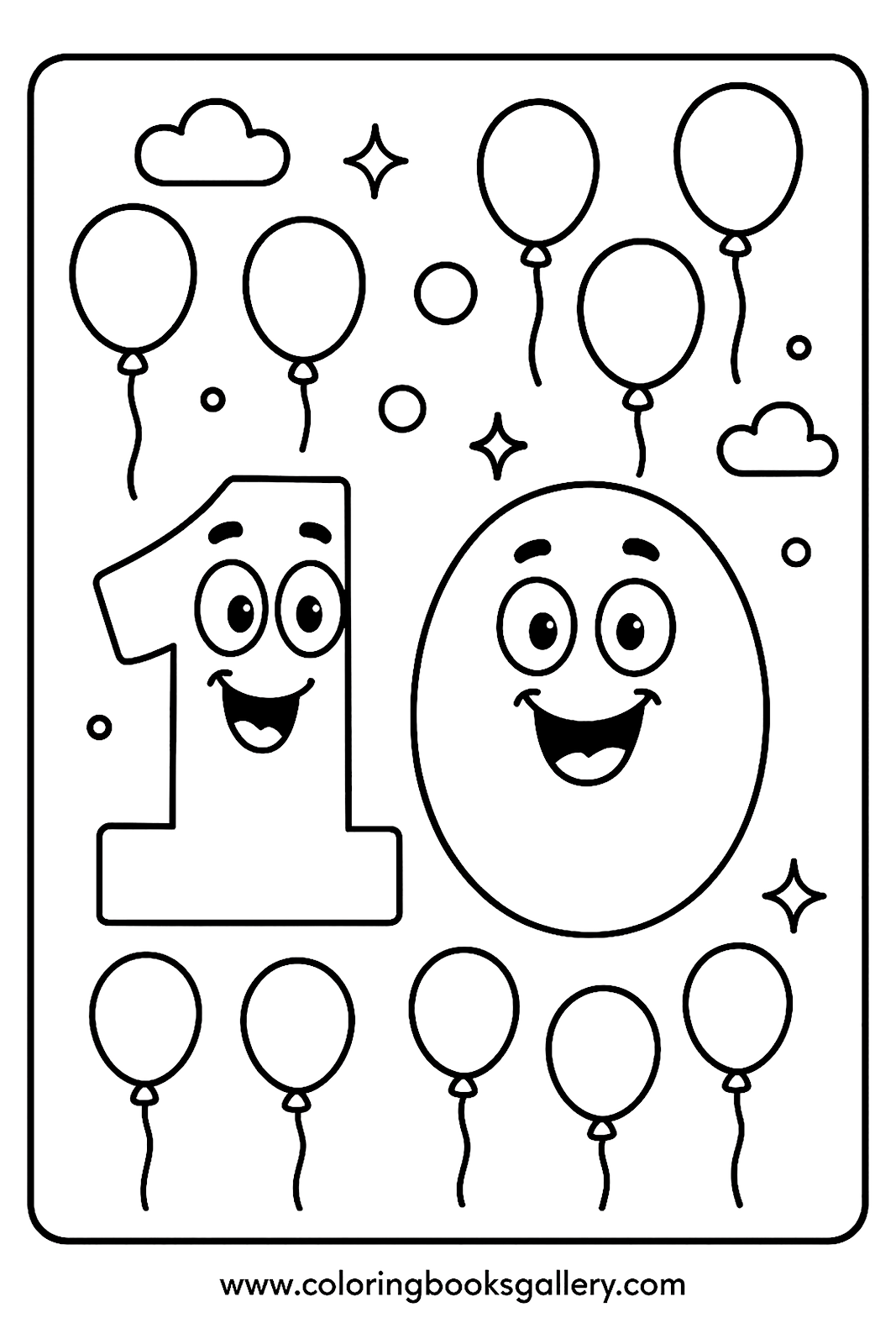 Easy number 10 coloring page for kids to learn counting
