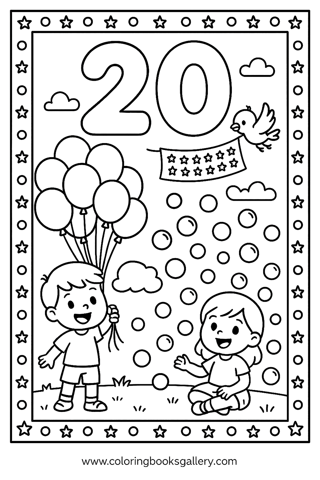 Ready to start? Download the number 20 coloring page now and watch your child learn and have fun! Don’t forget to explore the rest of our number coloring pages for more counting practice.