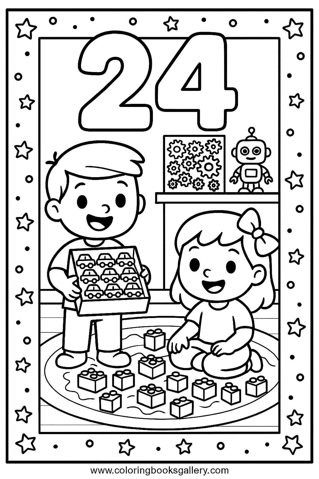 Easy number 24 coloring page for kids to learn counting