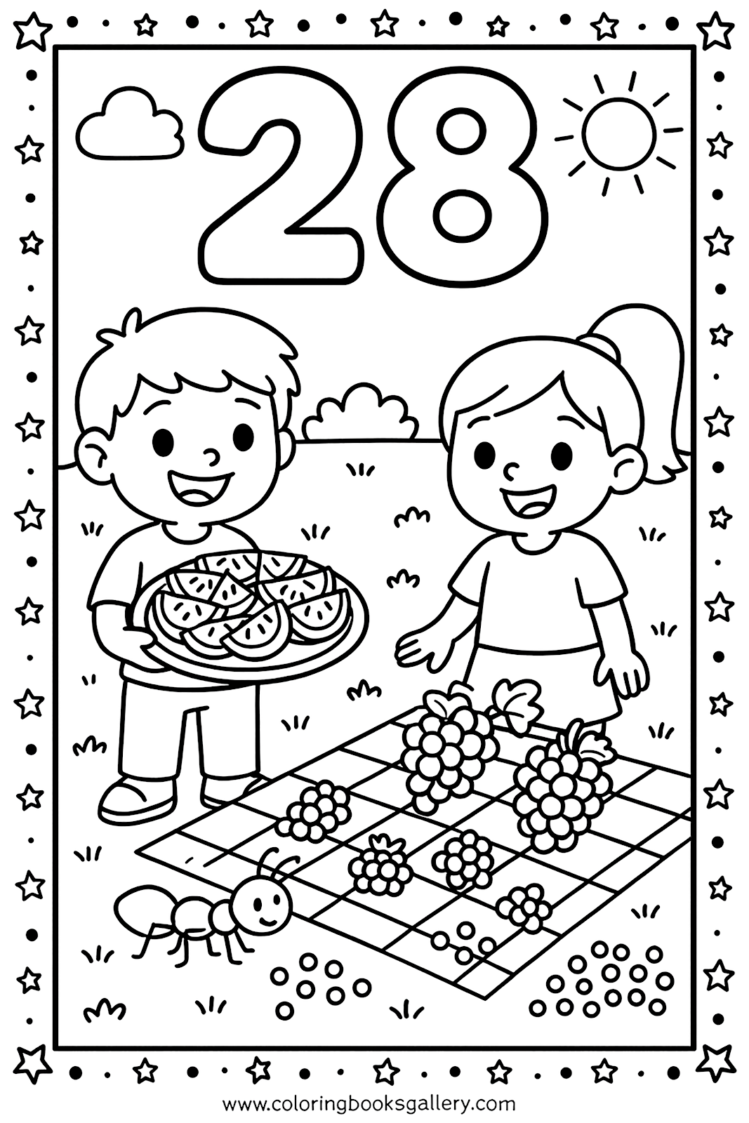 Introduce your child to the world of numbers with this easy number 28 coloring page, designed especially for kids who are learning to count. Coloring together is a great activity that encourages number recognition, builds fine motor skills, and adds an extra layer of fun to early math practice.