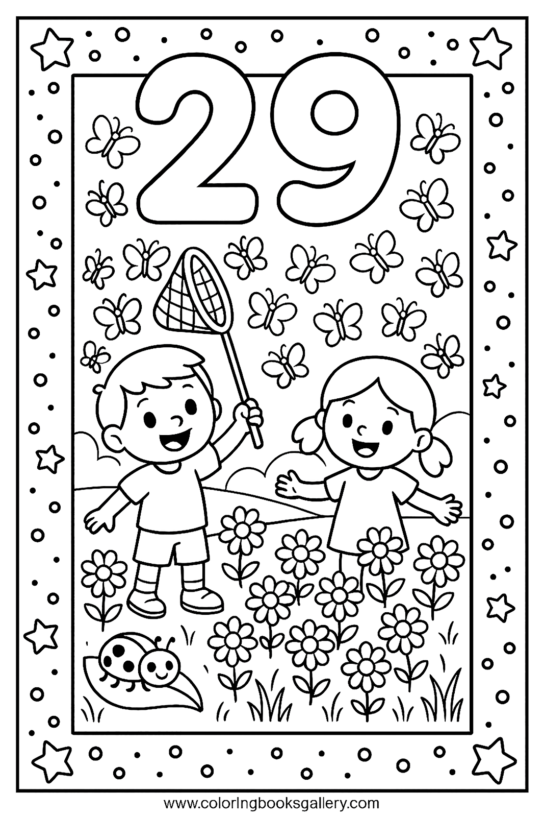 Easy number 29 coloring page for kids to learn counting