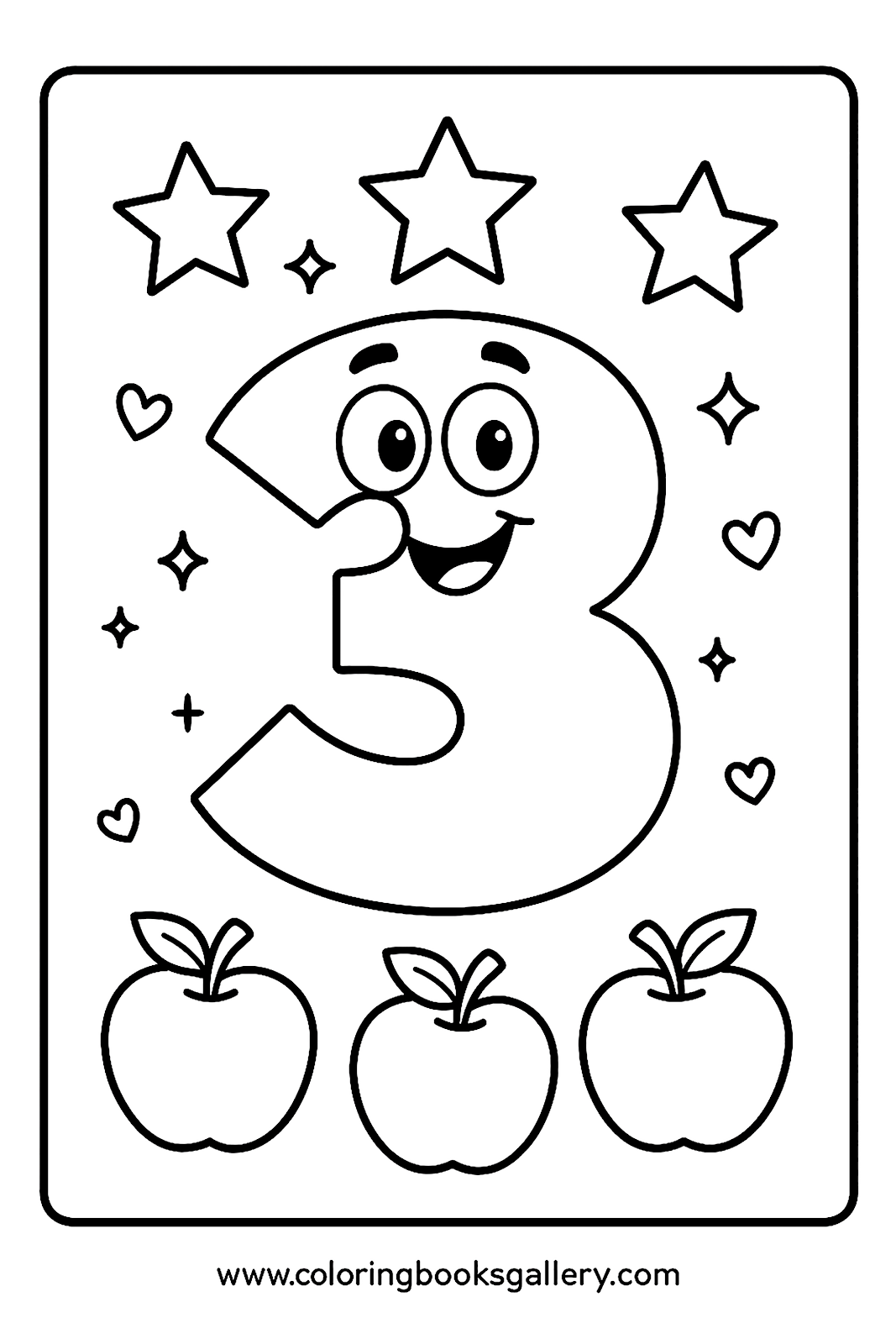 Easy number 3 coloring page for kids to learn counting