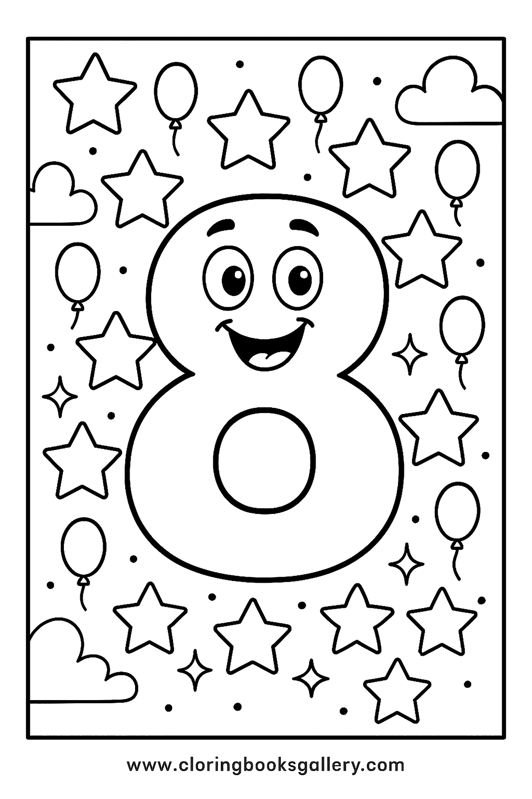 Easy number 8 coloring page for kids to learn counting
