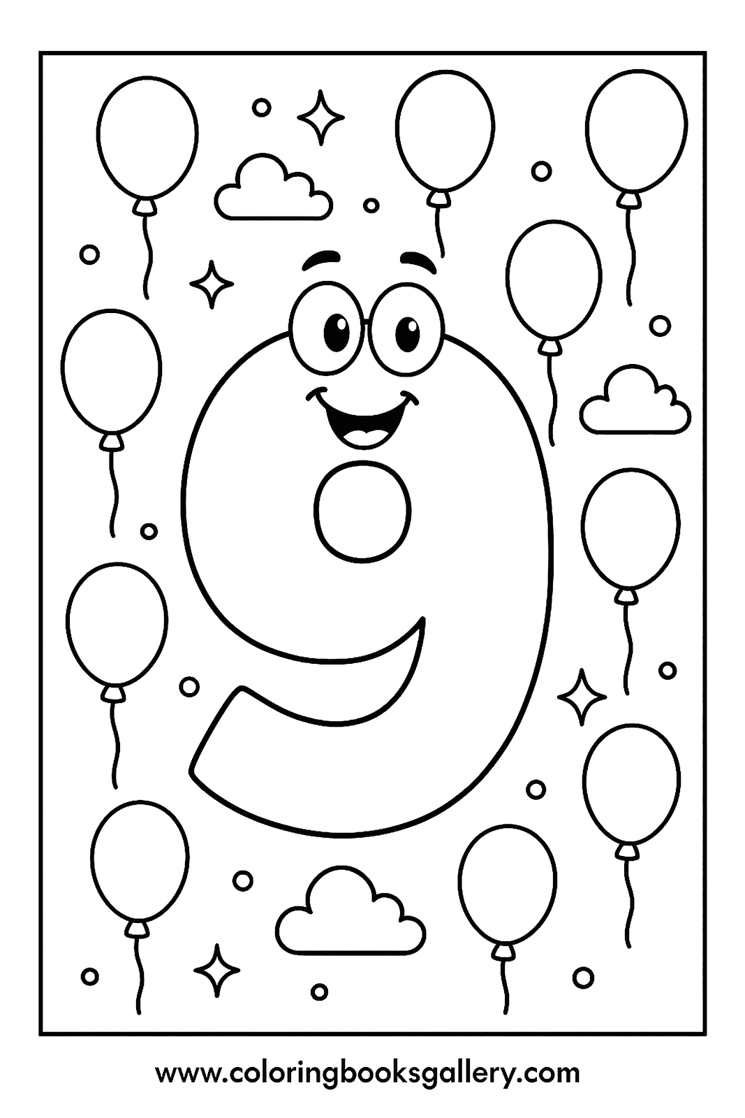 Easy number 9 coloring page for kids to learn counting