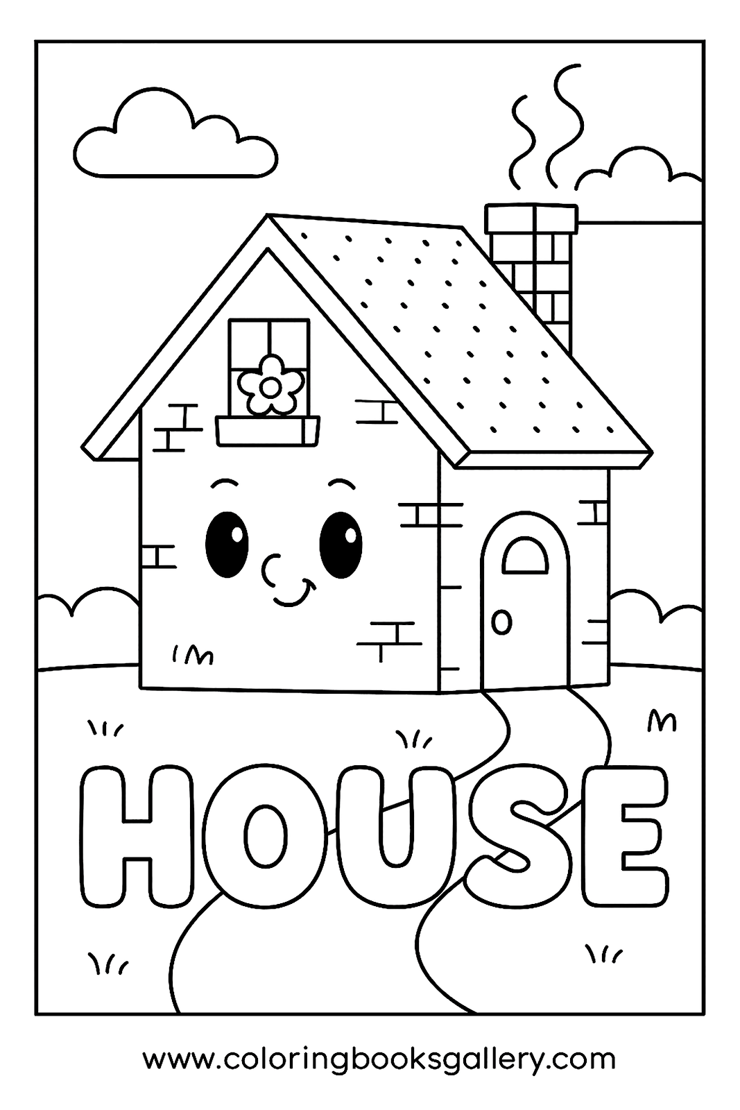 Fun coloring page to learn the English word 'House' for kids