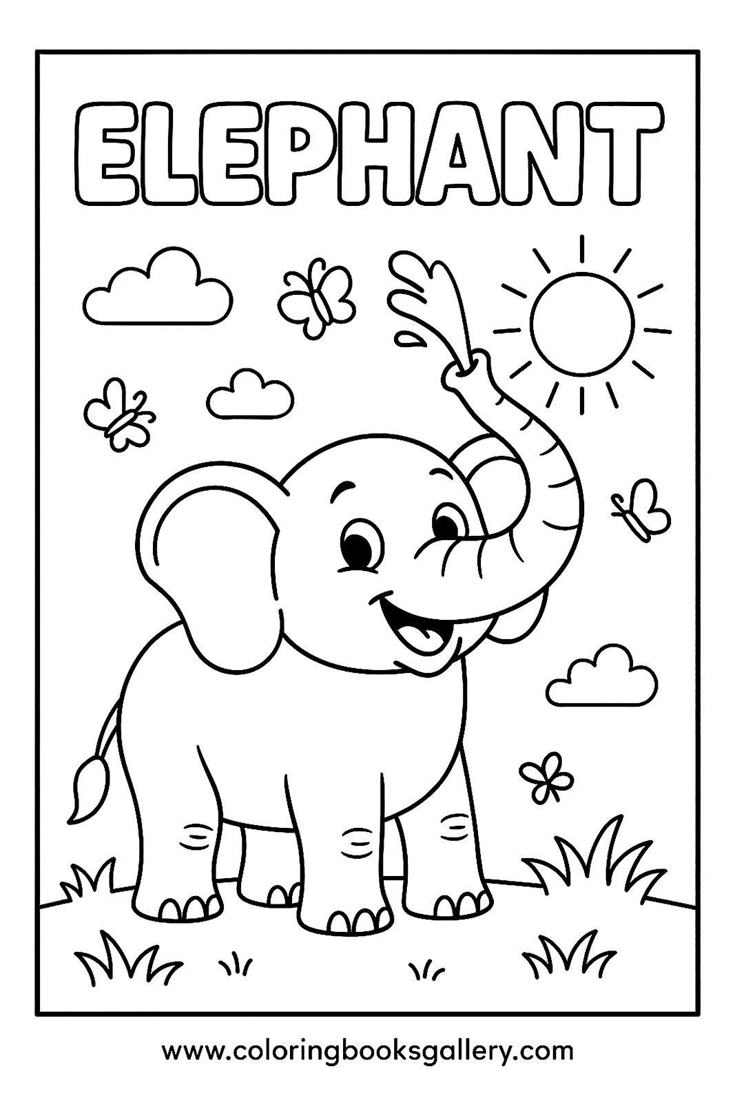 Fun coloring page to learn the English word 'Elephant' for kids
