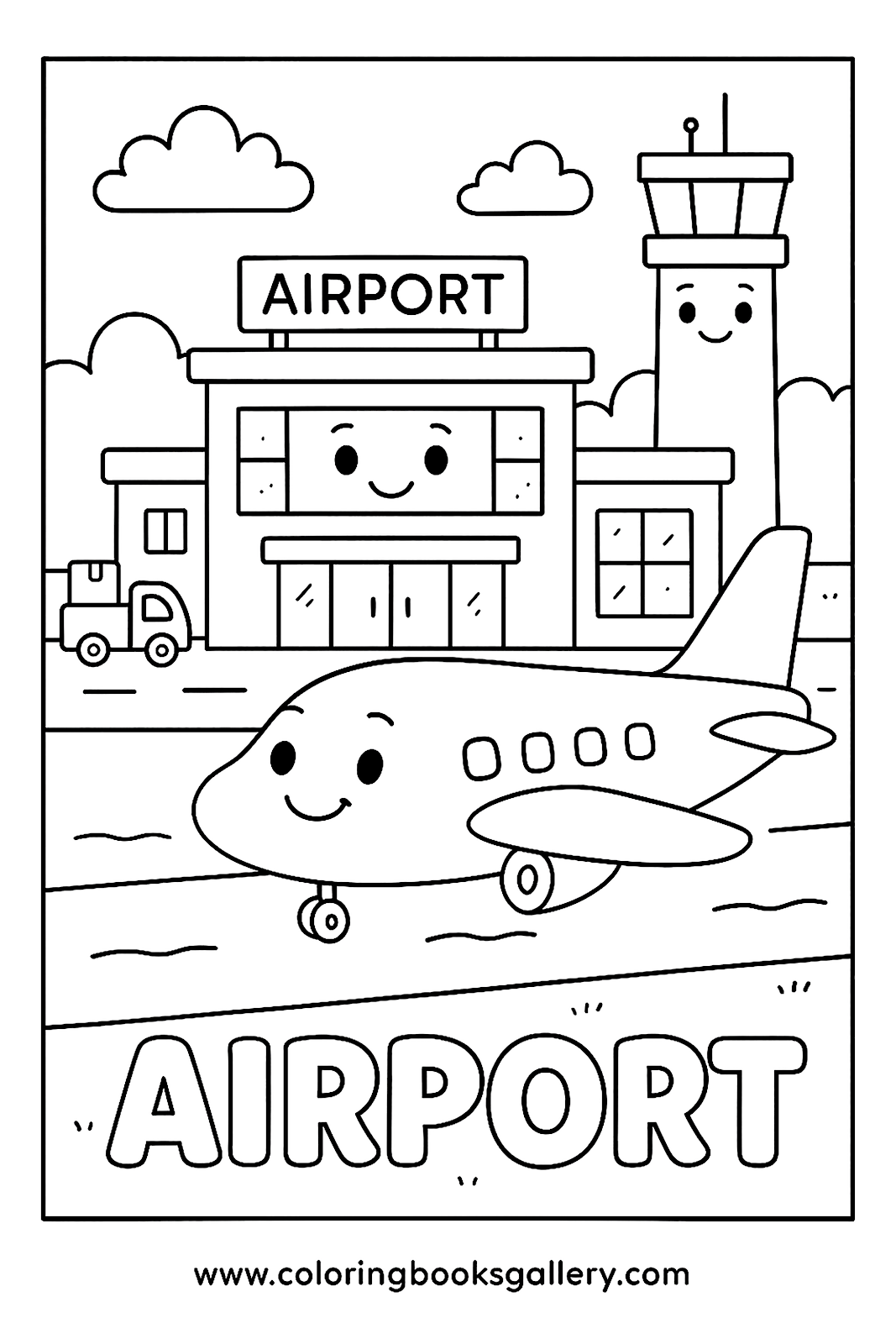 Airports are bustling places where people go when they travel by airplane. They are filled with interesting sights such as planes on the runway, control towers, and busy terminals. By coloring this picture of an airport, children get to visualize and understand what an airport looks like in real life. This hands-on approach makes it easier to remember new words and encourages discussion about different locations.