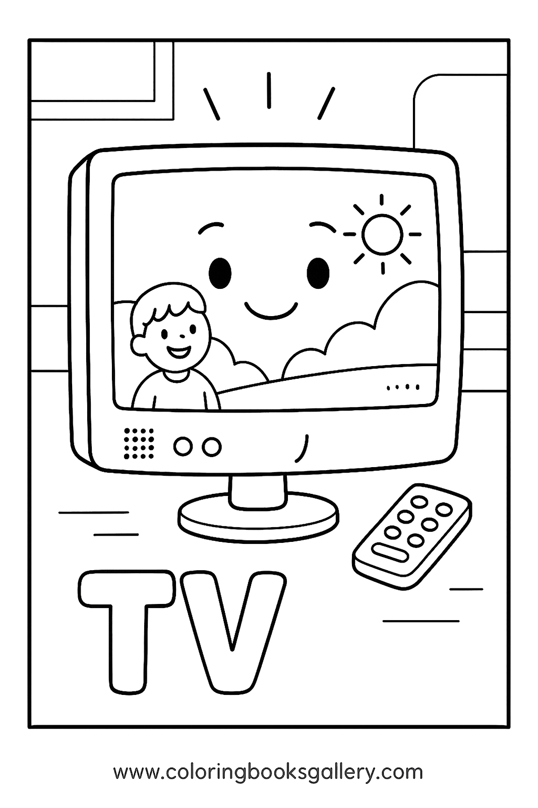 Coloring while learning helps children remember words better and encourages them to use English words in everyday conversations. If your child enjoys exploring objects around the house, try pairing this 'TV' page with our Elephant or Lion coloring sheets for even more engaging learning sessions.