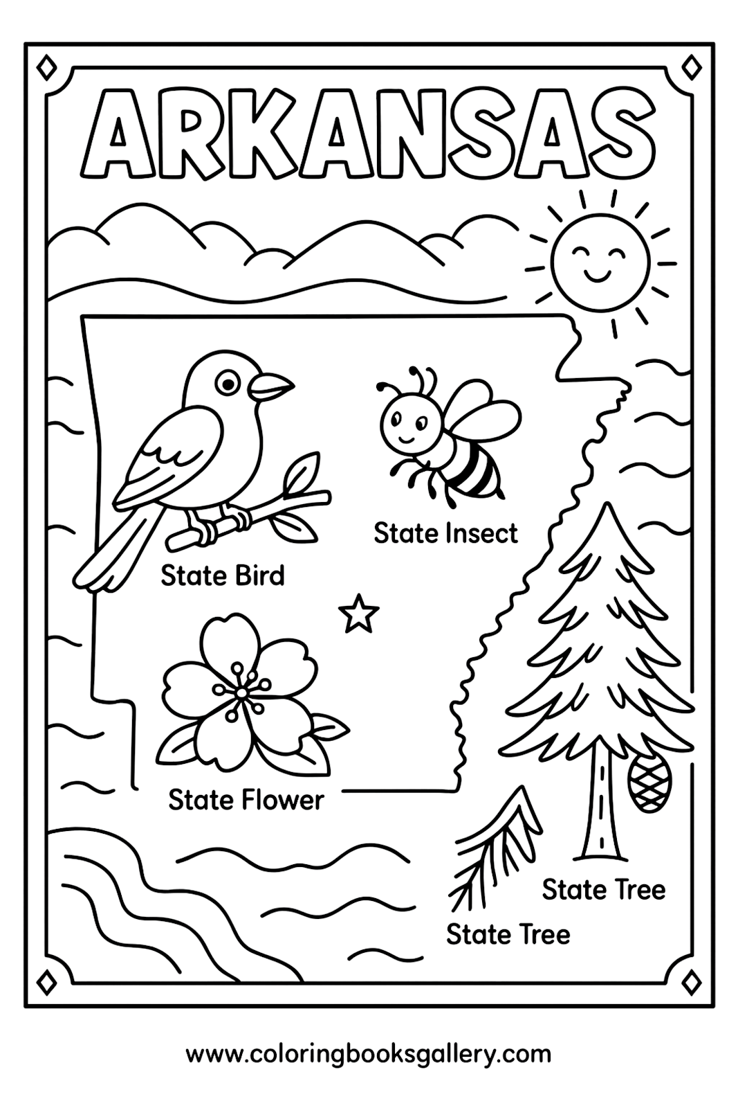 Arkansas Educational Coloring Page – Simple Educational Printable Line Art for Kids