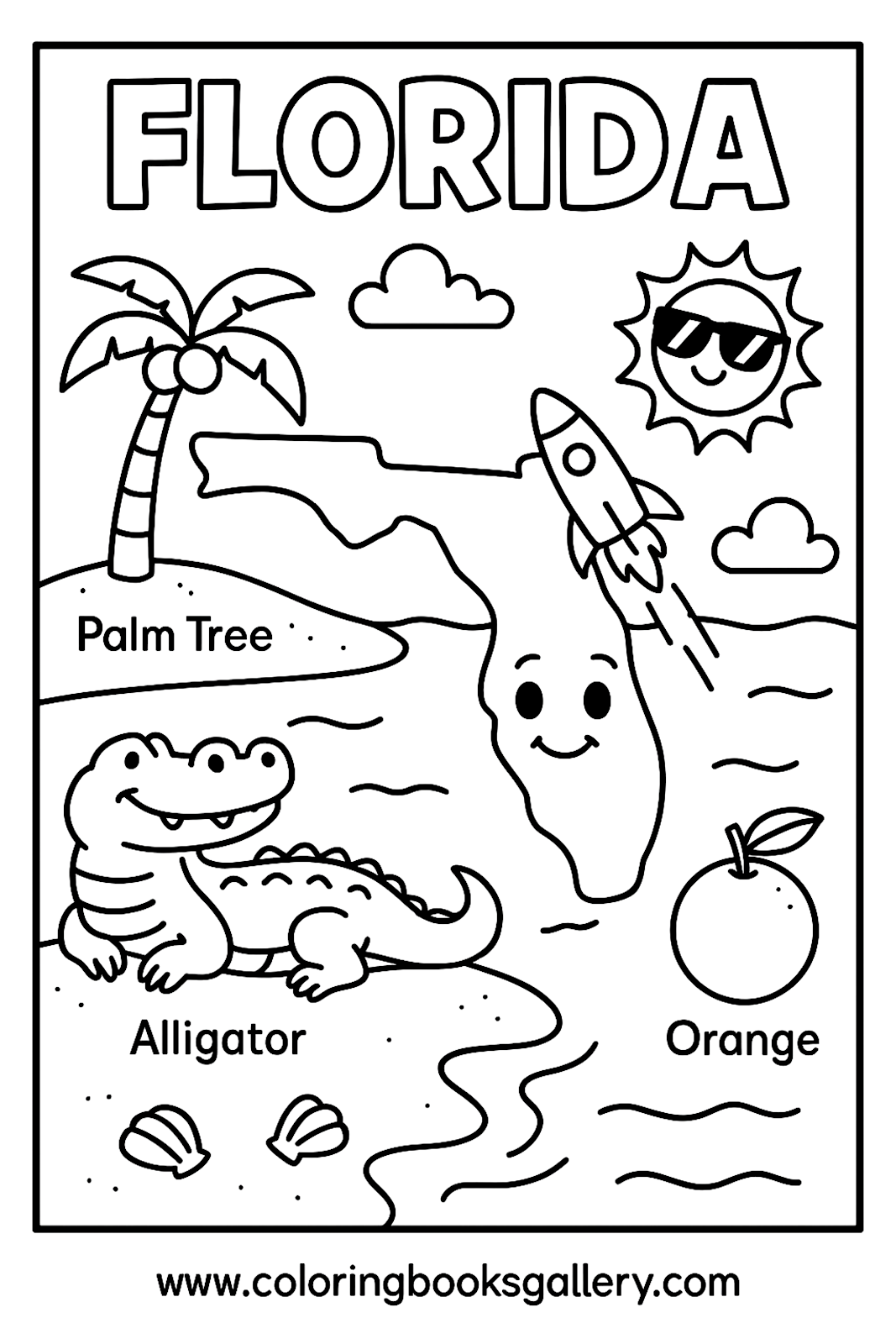Florida Educational Coloring Page – Simple Educational Printable Line Art for Kids