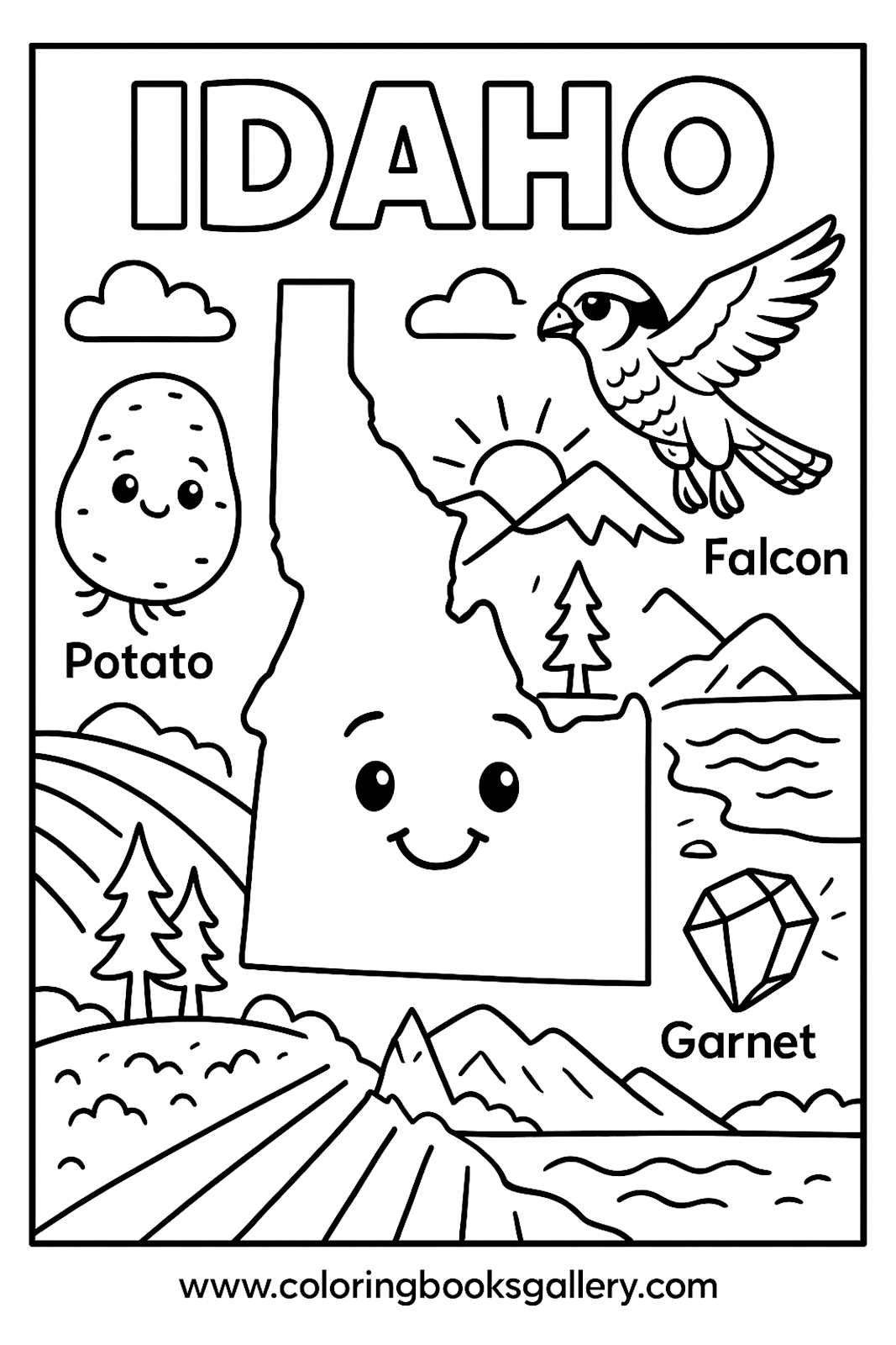 Idaho Educational Coloring Page – Simple Educational Printable Line Art for Kids