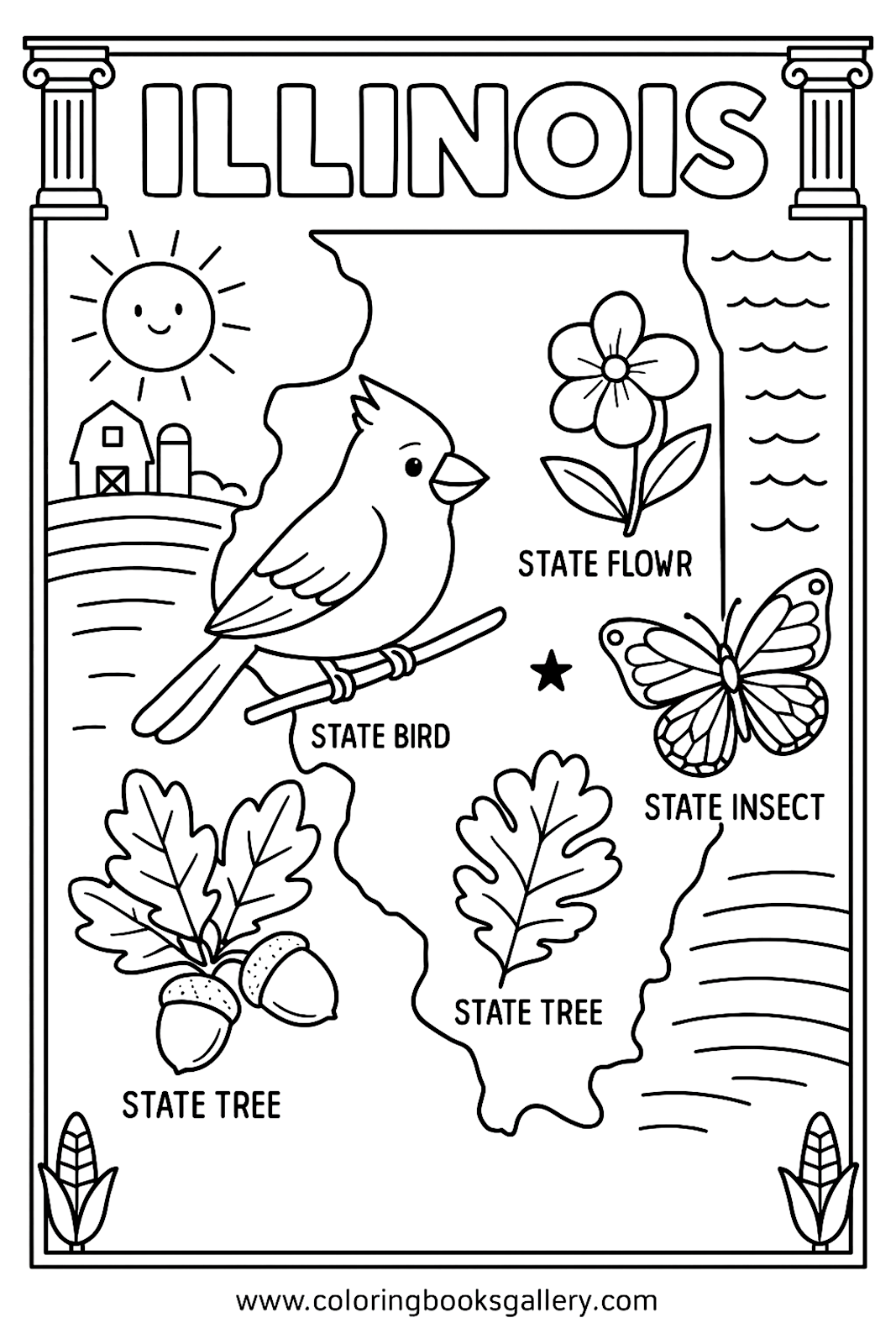 Illinois Educational Coloring Page – Simple Educational Printable Line Art for Kids