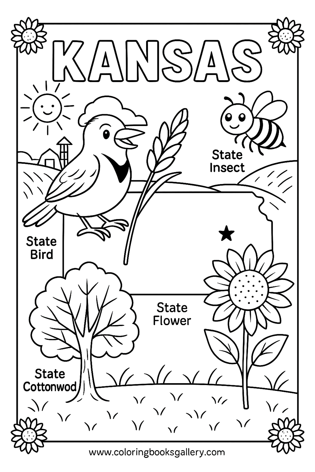 Kansas Educational Coloring Page – Simple Educational Printable Line Art for Kids