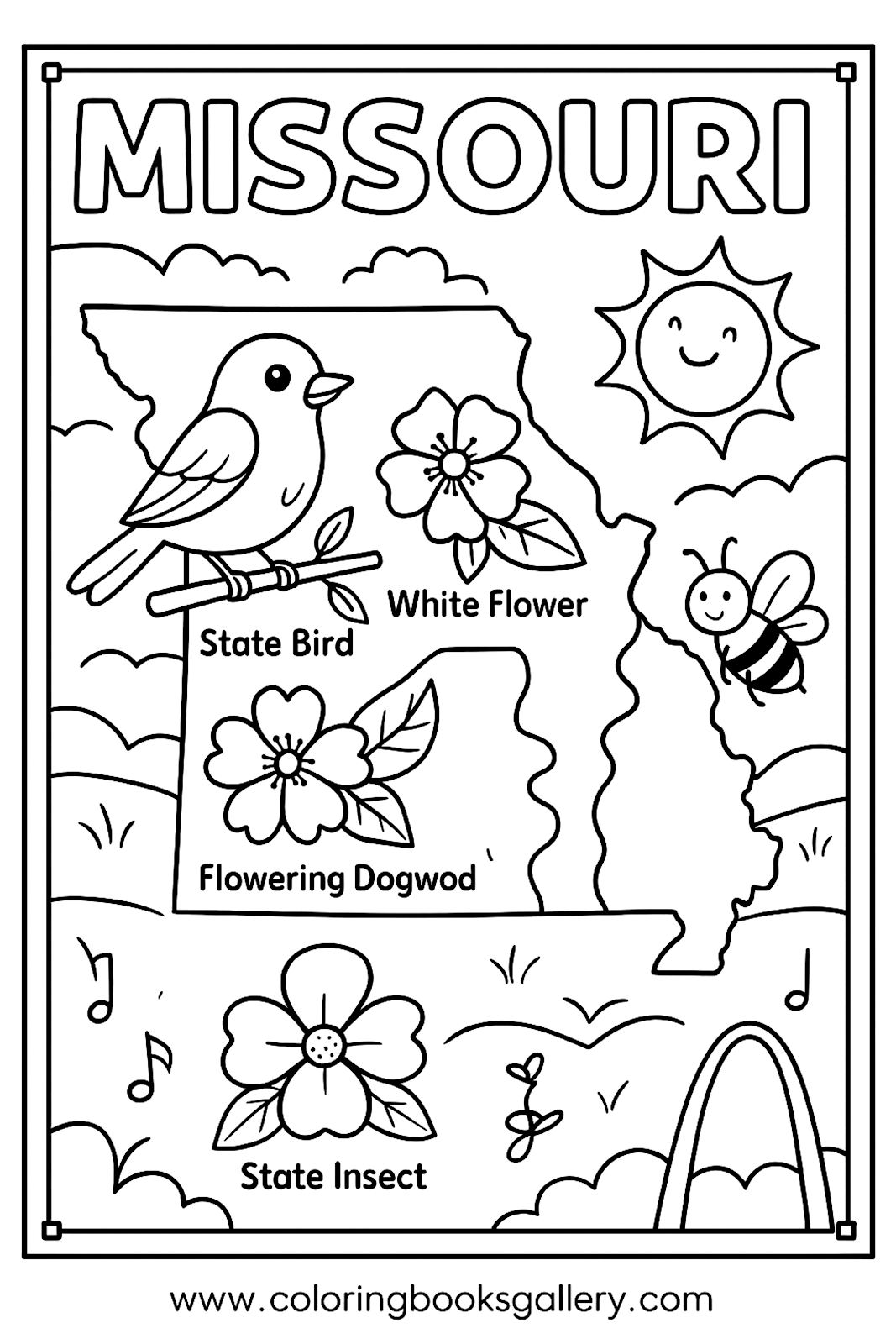 Missouri Educational Coloring Page – Simple Educational Printable Line Art for Kids