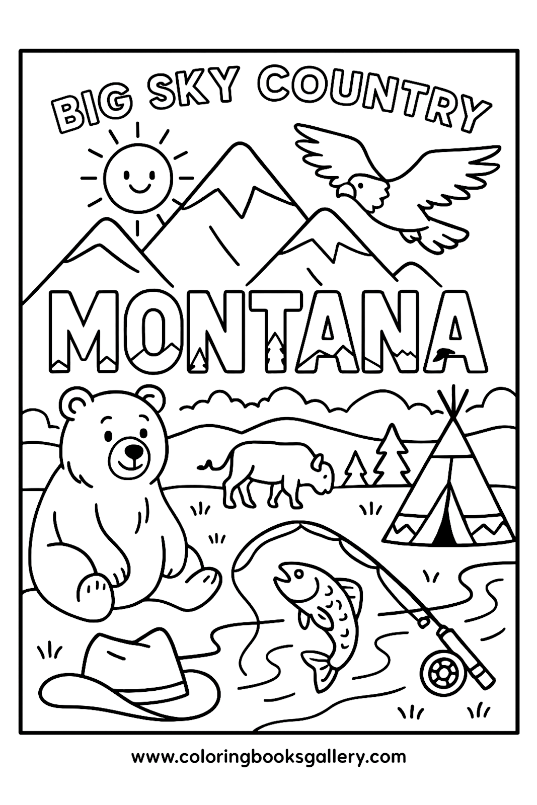 Montana Educational Coloring Page – Simple Educational Printable Line Art for Kids