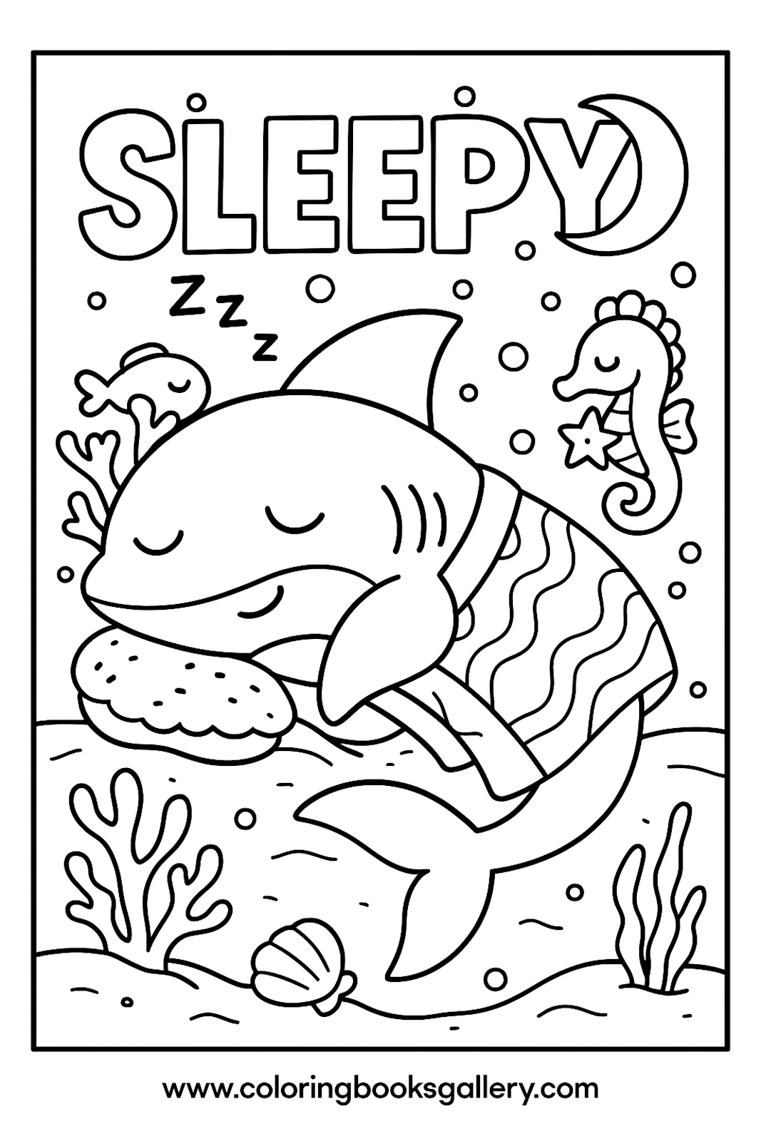 Sleepy Shark Coloring Page for Kids – Simple Emotional Learning Printable Line Art